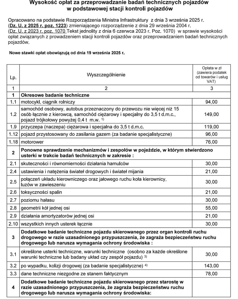 Aktualny cennik badań technicznych