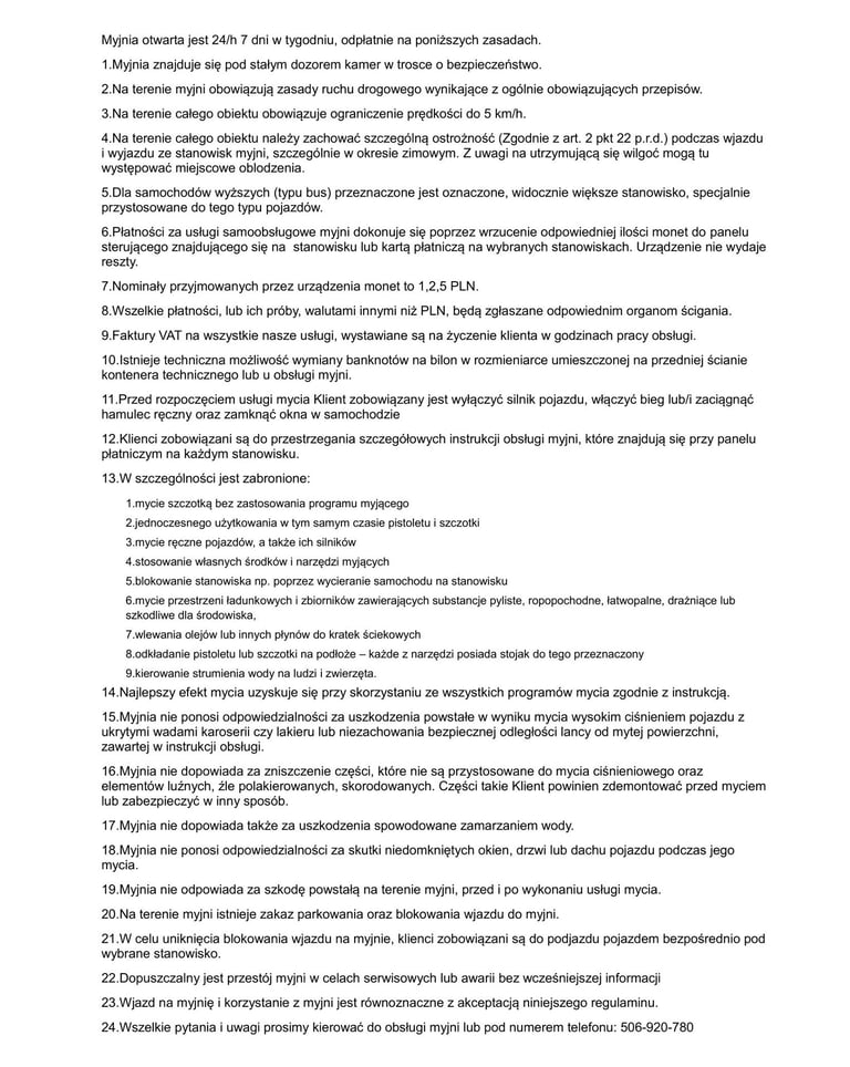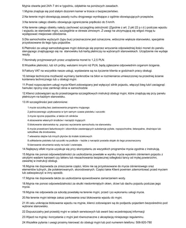 Regulamin myjni samochodowej